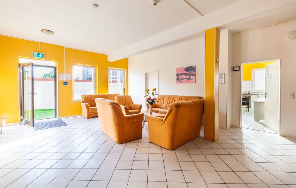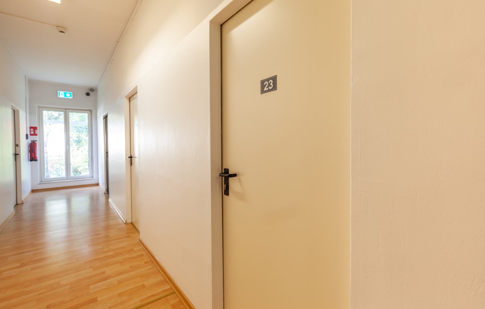 Beachten Sie bitte, dass wir in unserem Haus keine Verpflegung bieten. Auf jeder Etage gibt es eine Küche, die Ihnen zur freien Nutzung zur Verfügung steht. Ebenfalls sind Waschmaschinen gegen Entgeld nutzbar.